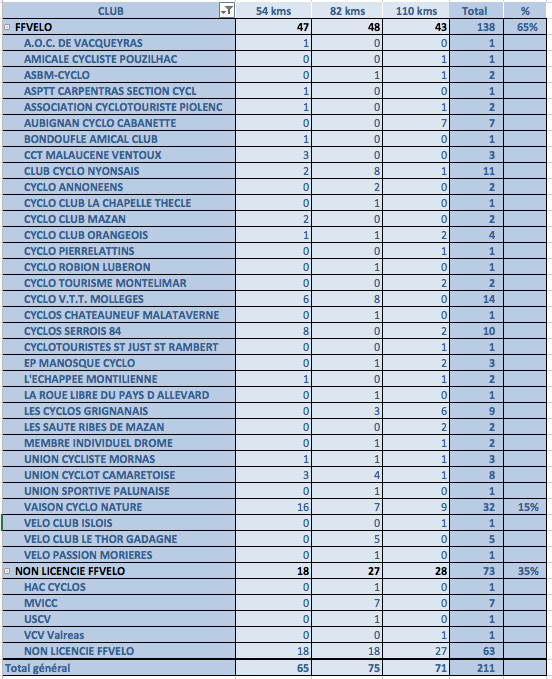 | Nombre de participants par Club | Performance Rallye des Voconces |